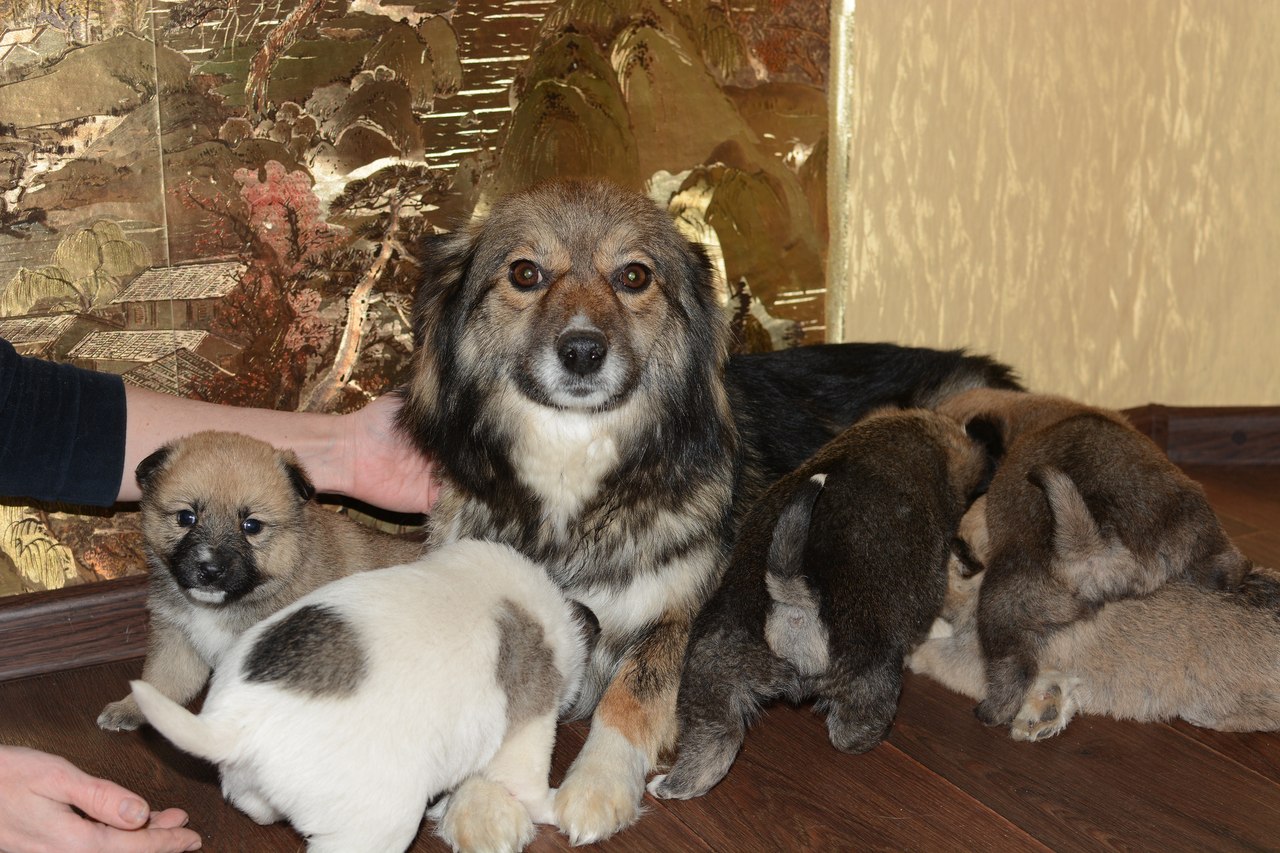 Щенкам сокрее всего чуть больше месяца, есть зубки, кушают