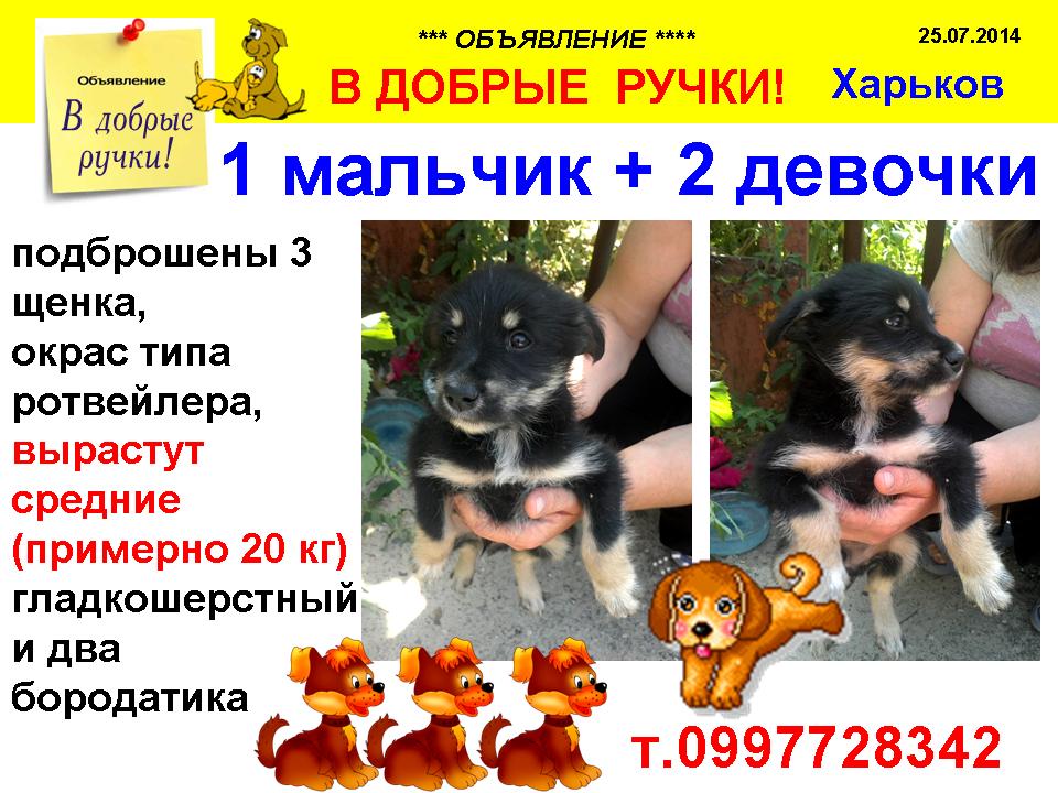 подброшены 3 щенка,