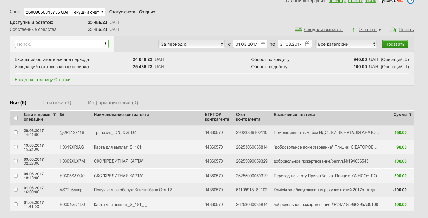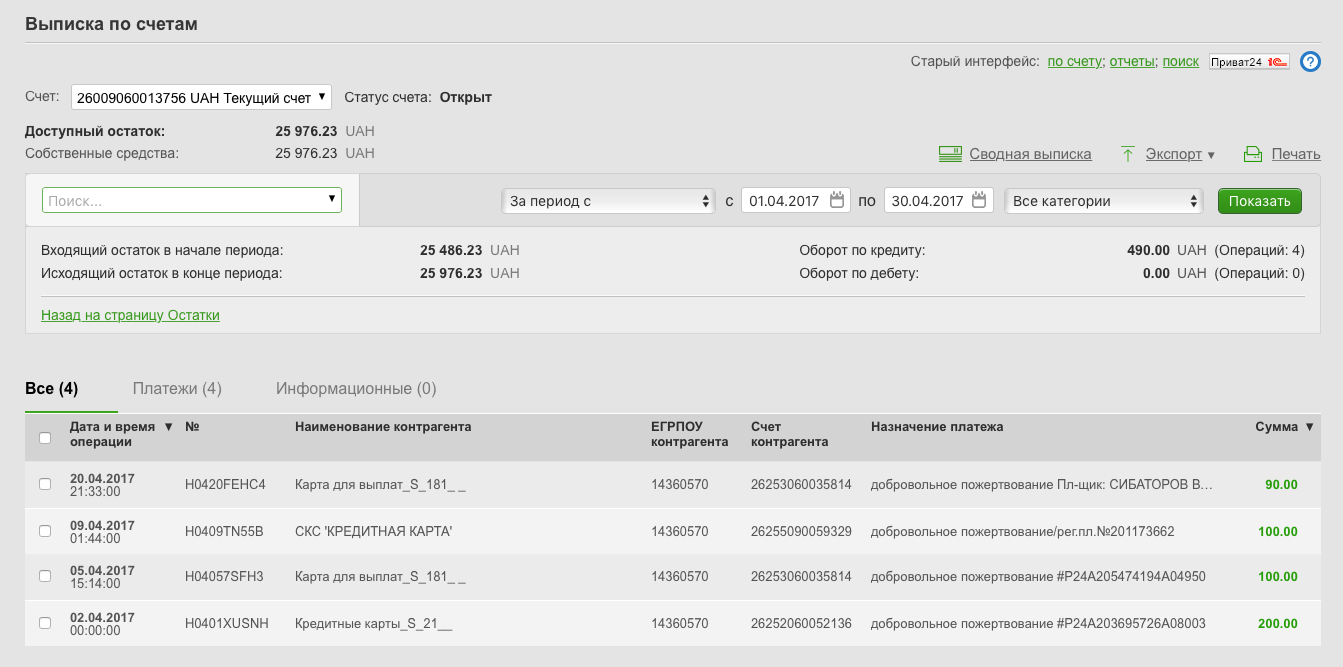 За 24-25.07.2017г. поступило на счёт 1500грн.