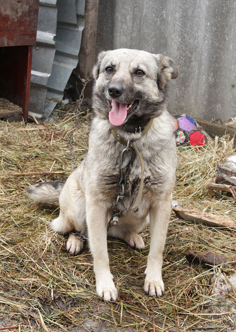 Таким Стрелок был год назад, когда его пристраивали с улицы.
