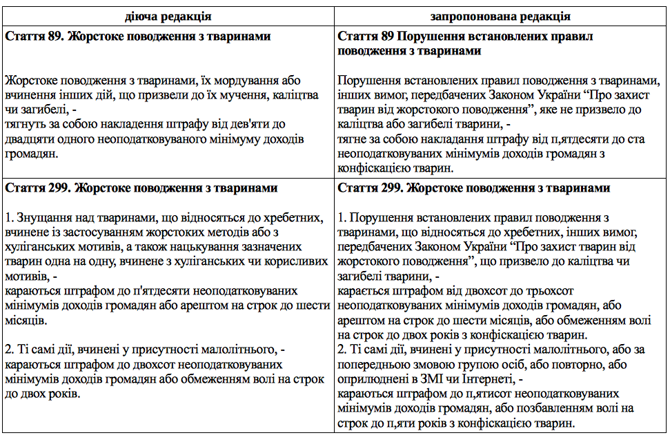 Також було запропоновано доповнити ст.89 КУпАП частиною другою, та встановити покарання за заклики та пропаганду жорстокого поводження з тваринами.