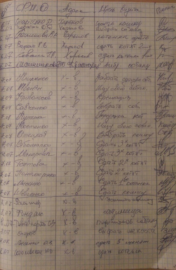 Недавно я опять была в КП "ЦОЖ" и увидела в комнате приёма (так как дальше неё меня не пустили) "Журнал посещения КП "Центр обращения с животными".