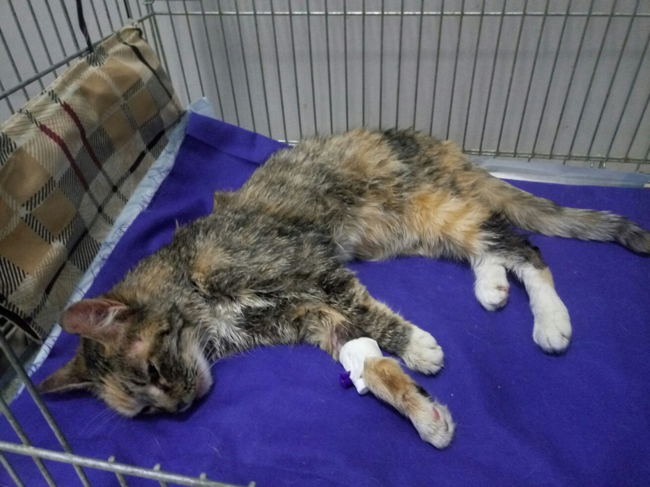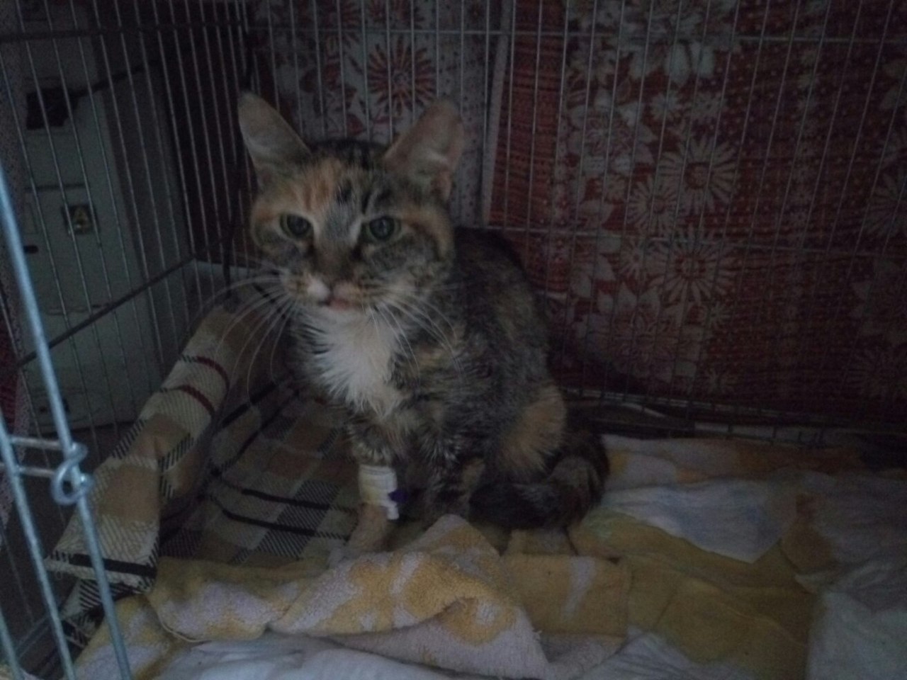 Сегодня я снова её проведывала. Ей немного лучше. Мара реагирует на поглаживания. Я купила ей Рикавери, но она отказалась от еды. По-прежнему капают р-р Рингера и глюкозу.