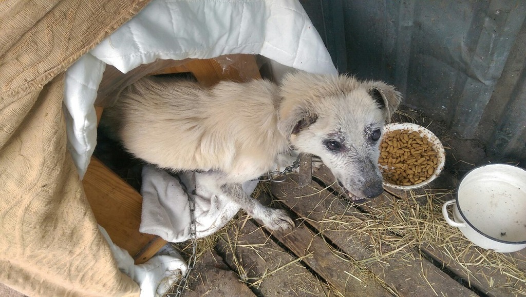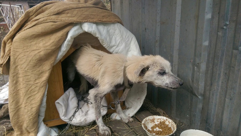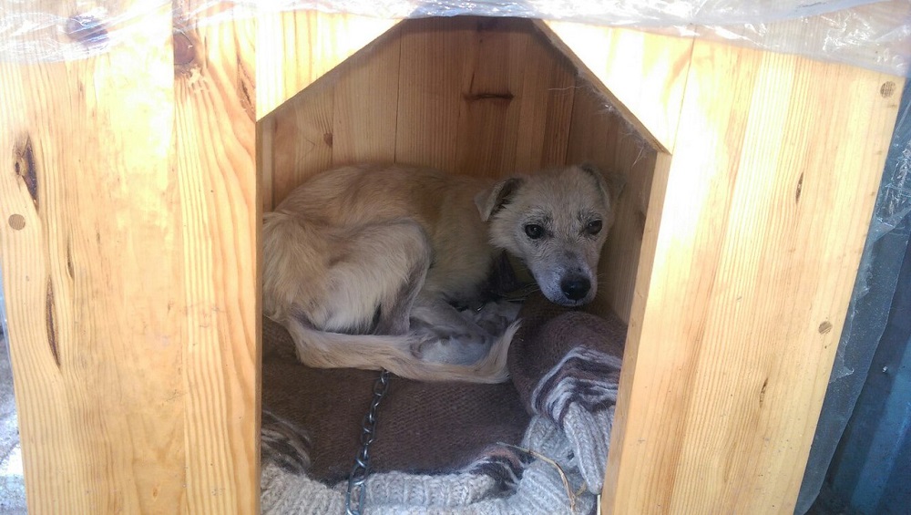 Кнопочка-солнышко! Как же хорошо, что у неё есть теперь теплая будочка, еда и заботливый опекун! :give_rose: :give_rose: :give_rose: :heart: :heart: :heart: