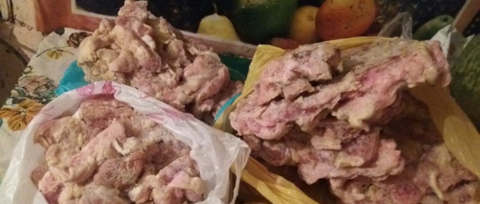 Сегодня (06.11) завезла в приют немного субпродуктов для каши 7,3 кг * 13,50 грн = 98,55 грн (покупала в мясном магазинчике, где не дают чеков, прилагаю фотоотчёт).