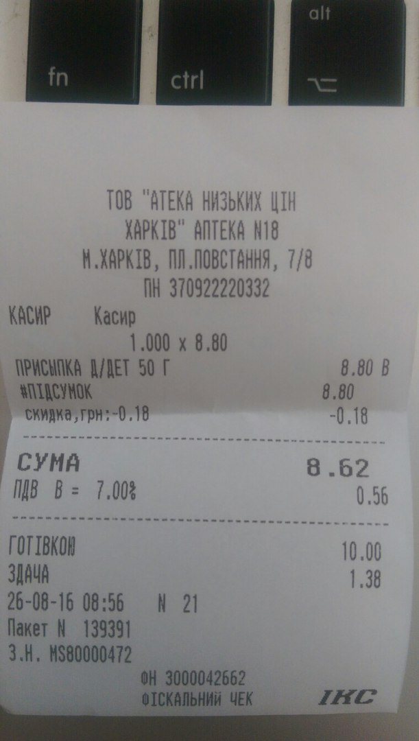 Так же отвезла Супрастин = 59,20грн. (чек)