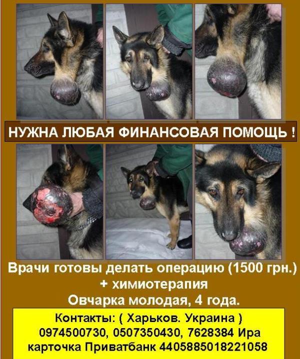 Очень нужна помощь в пиаре в соц. сетях. Очень прошу помощи. Чем быстрее соберем финансы, тем быстрее отвезем собаку на операцию. Хозяин и так затянул с операцией. Когда опухоль была маленькой, у него не нашлось 500грн для собаки. Собаке просто не повезло с хозяином.