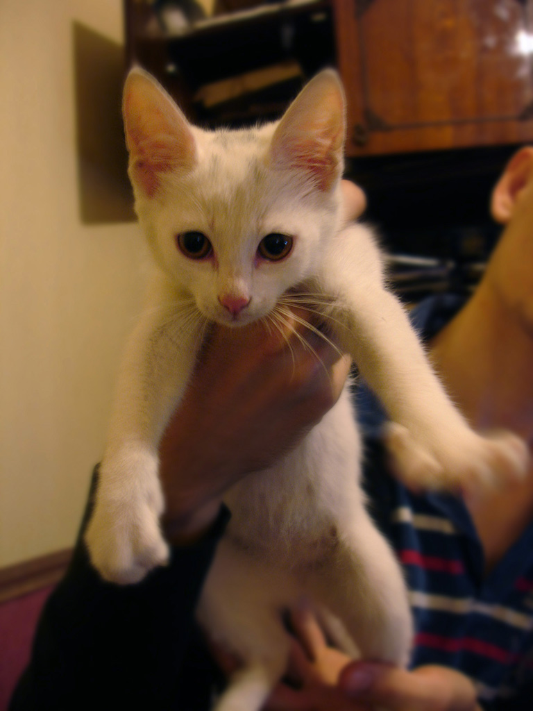 Милейшее создание белого цвета с розовым носом, очень ласковая, ходит в лоток.