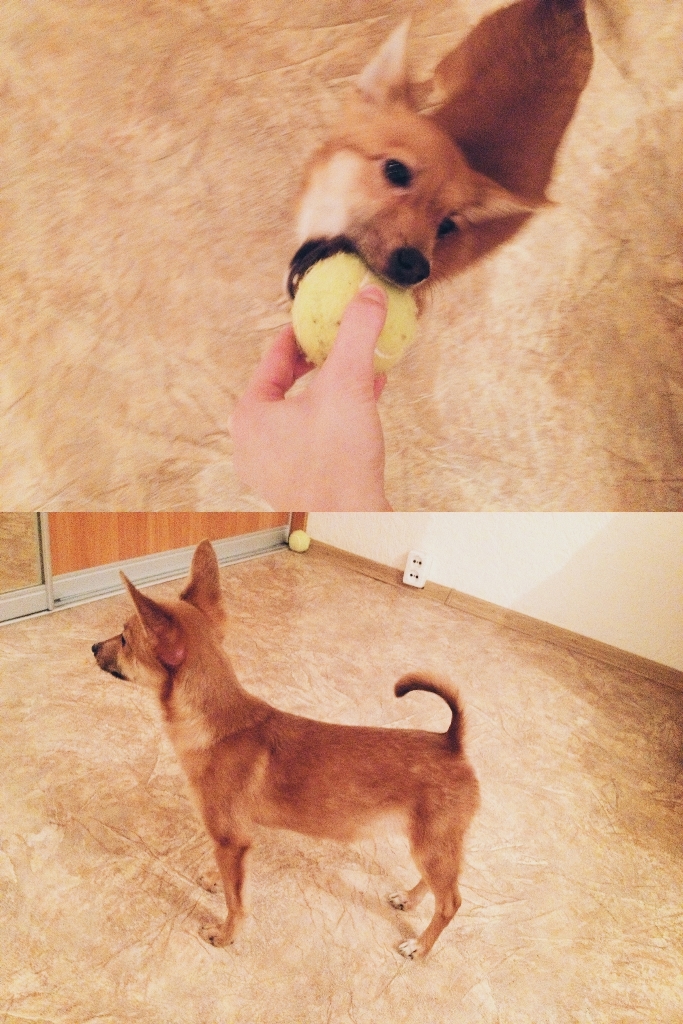 Харьков! Ищет заботливые ручки щенок, сука, 4 мес. Вырастет ниже колена. Нежное и трепетное существо! На второй день дома удалось уже приучить к пеленке. Активная, любит играть с теннисным мячиком, приносит его в зубах. Но если ей позволить посидеть на ручках, для нее это будут минуты истинного наслаждения!)