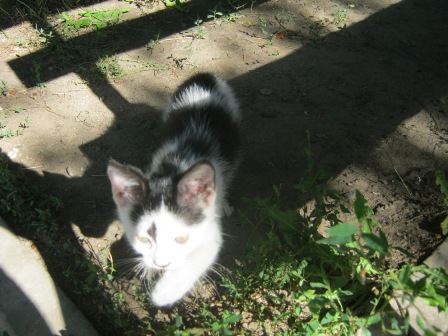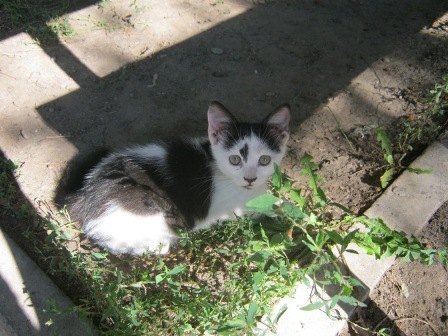 Елизарова убрала точный адрес. Модератор , фото залью вечером, забыла кабель. Расскажу реакцию мелких на нового человека (т.е. на меня). Подошла к их месту дислокации, они вылупили на меня две пары любопытных глазенок, оторвавшись от принятия утренних солнечных ванн, и наблюдали, что же я достану из сумки, но с места не двинулись. Когда достала фотоаппарат у черненького котенка пропал ко мне интерес, и он/она продолжил приводить себя в порядок. А черно-белый тут же вскочил на лапки и не отрывая заинтересованный взгляд направился обнюхивать фотоаппарат. Послушал, как он жужжит, клацает, поудивлялся и переключился на свое любимое занятие - игру, с удовольствие половил мой палец, мягкой лапкой, без коготочков. Все это время черныш нежился на солнышке и вылизывался, не обращая на нас никакого внимания - аристократ(ка) растет.