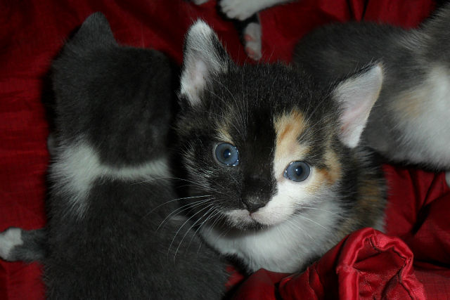 Все трёхцветные котята (кремово-голубая и черепаховая (чёрно-рыже-белая), точно девочки.