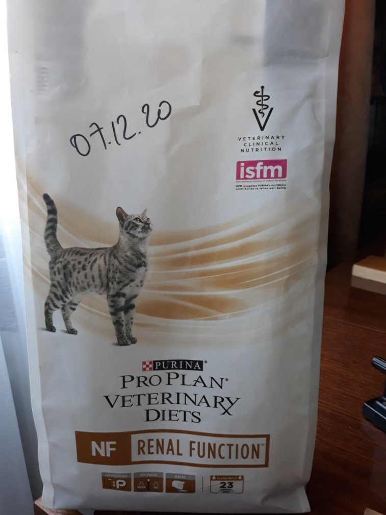 Сейчас очень быстро и существенно подорожал и Purina Pro Plan NF, я просто уже не справляюсь материально. Мне в месяц нужно несколько пачек, ну не экономить же ещё и на дневной норме корма почечникам, они и так, несчастные, не видят в полной мере ни мяса, ни молока, ни творога.