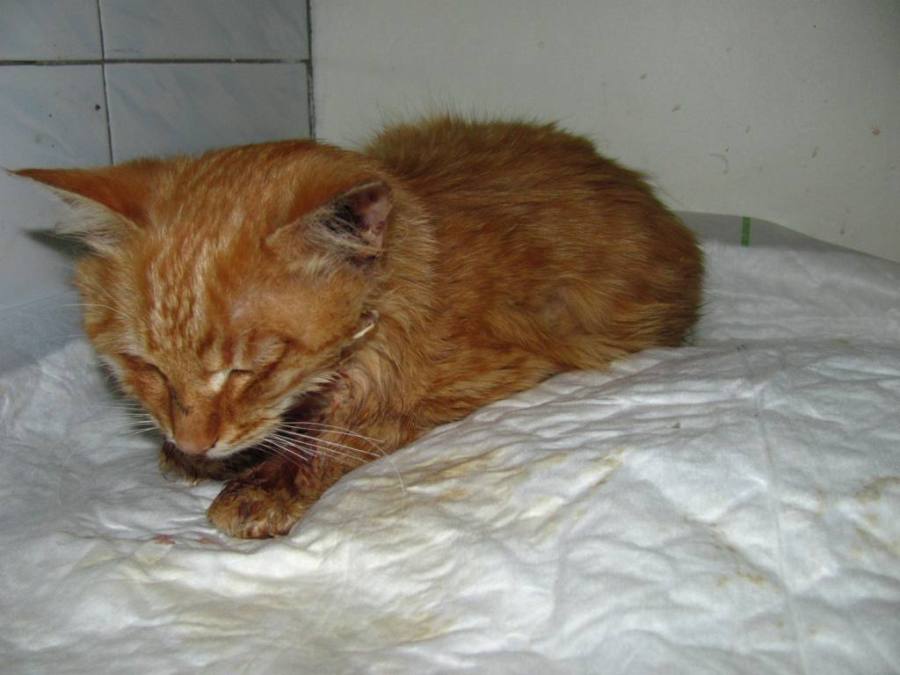 3) Кота увидела какая-то женщина сердобольная, он обитал либо где-то на стройке, либо в гаражах. В начале увидели, что с ним что-то не то. Но на 3й день увидели, что ему плохо, и отнесли в клинику. У кота раны начали подгнивать, от него исходит плохой запах. Но почему ничего не делали потом еще в клинике - у него взяли анализы и пытались поддержать до операции. Я так понимаю, это все не так просто. Тигра уже принесли довольно поздно в клинику. Потом эта женщина отказалась от него, но так как врачи, я так понимаю, тоже не хотели его усыплять, то спросили нас.