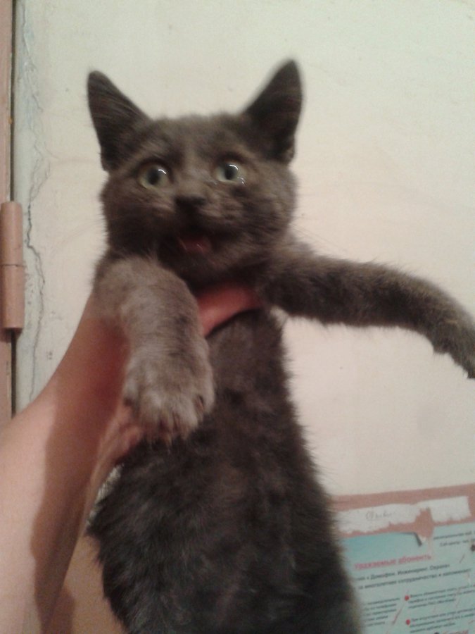 В подъезд подброшен котенок-подросток, очень похож на русскую голубую кошку. Мальчик чистенький, видно на улице недавно, немного пуглив, но сразу начинает мурчать, когда гладишь. На вид 4-5 месяцев.