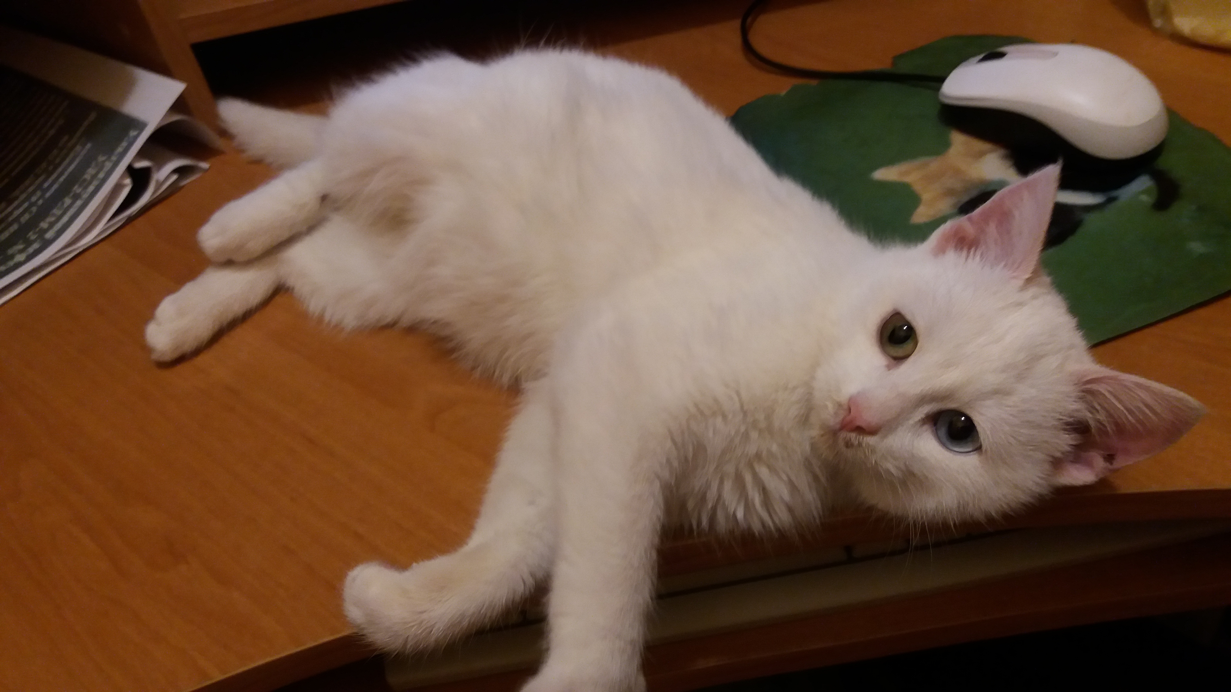 После отмытия нарисовался худой белоснежный мальчишка 6-7 месяцев с разными глазками: голубым и зеленоватым. НЕ ГЛУХОЙ!!!