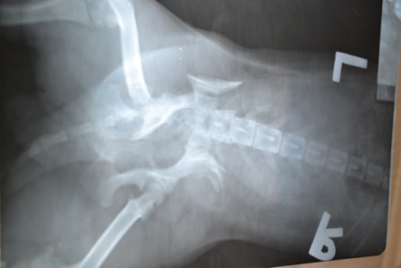 В Айболите,куда мы повезли ее сразу как только подобрали,сказали что такая травма не операбельна, потом в Лидере Анна Викторовна тоже сказала.что операция не нужна,что будет калечка на 3х лапках,ну это ничего страшного! поэтому мы накупили ей лекарст,корма и спрашивали кому можно ее определить, так как не знаю ка кдолго смогу этим заниматься (причина близяться роды).