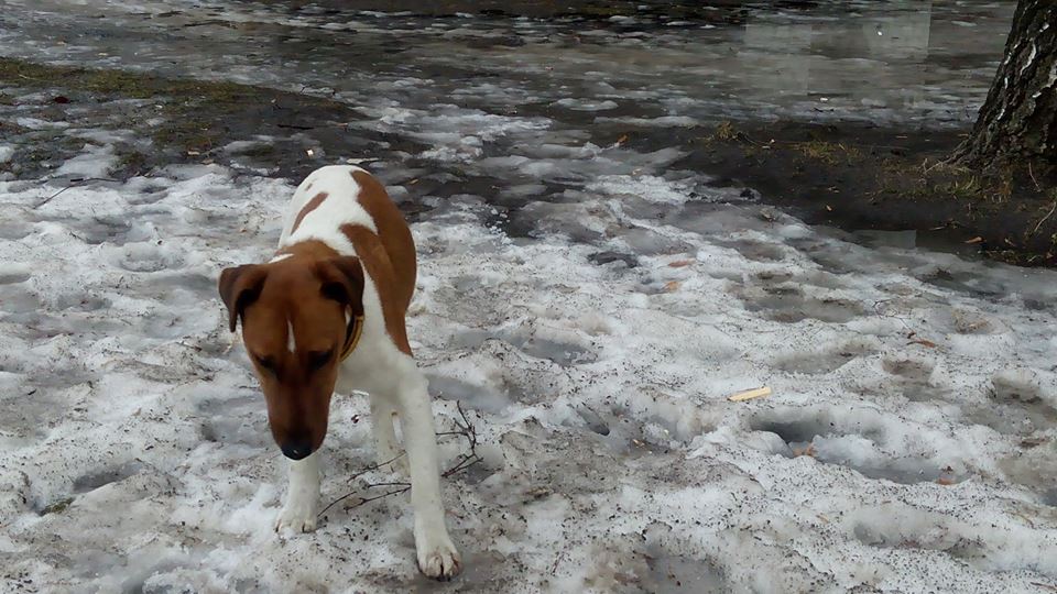 Позвонила женщина: по ул. Г. Труда в лесу в зоне отдыха возле озера (недалеко от "Каравана" на Салтовке) сейчас бегает небольшой пёсик. По её описанию он похож на терьера ( может терьер Джека Рассела). Это кобель. Окрас белый с коричневым (голова коричневая и на туловище коричневые пятна), шерсть короткая, ушки висячие, хвостик обрезан не очень коротко. На собаке бежевый ошейник. Она бы его взяла, да пёсик боится всех и не подходит близко. Женщина его покормила. Если хозяева не найдутся, то он замёрзнет в лесу с такой короткой шерстью.