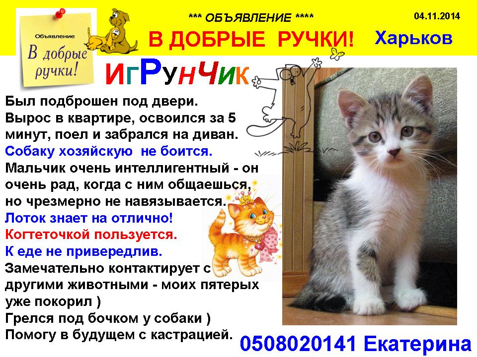 Re: Котенок (мальчик), возраст 2 месяца ищет дом