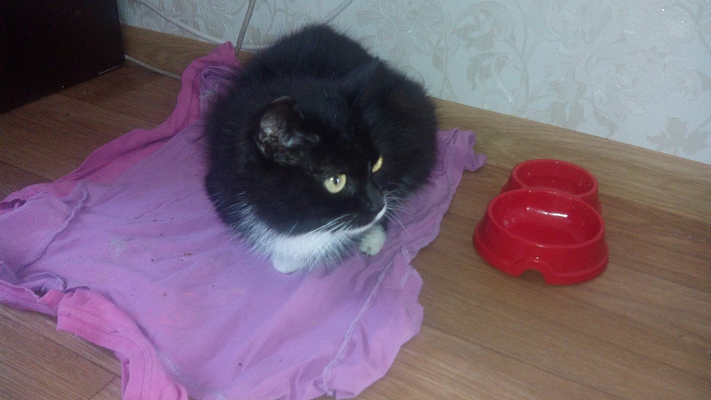 Отдадим в хорошие руки кошечку. Окрас черный с белым. Возраст 1,8 года. Жила скорее всего на улице. От извергов получила перелом тазовых костей. Несколько недель провела в клинике. Сейчас выписали и живет у нас, но возник конфликт с нашей кошкой.