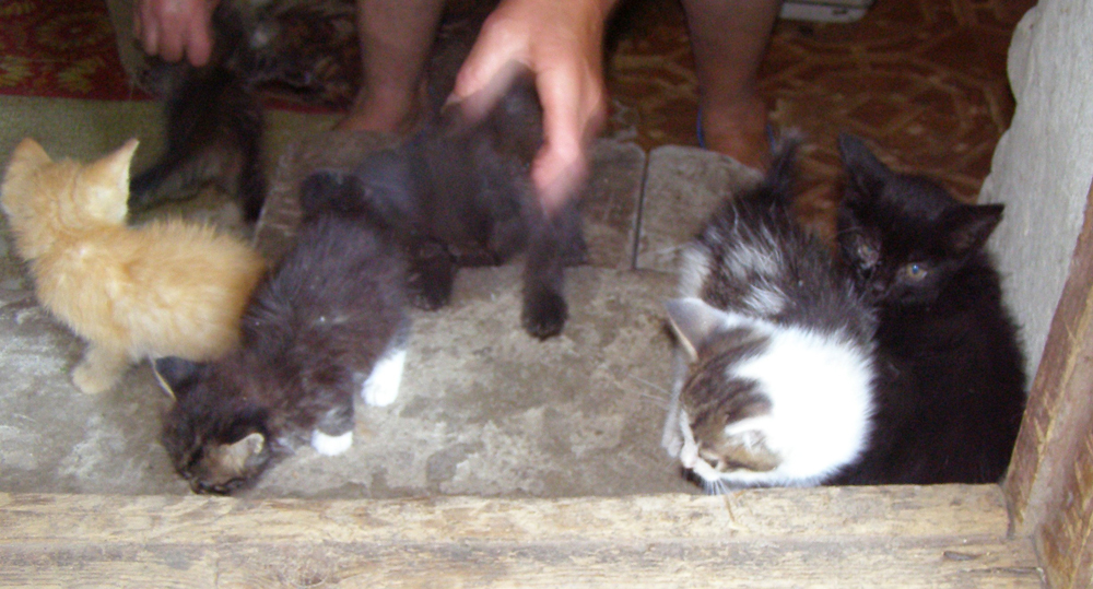 В нашем подъезде есть замечательная женщина Люба, которая в подвале оборудовала для кошек убежище. "Добрые люди" постоянно подбрасывают к ней котят.