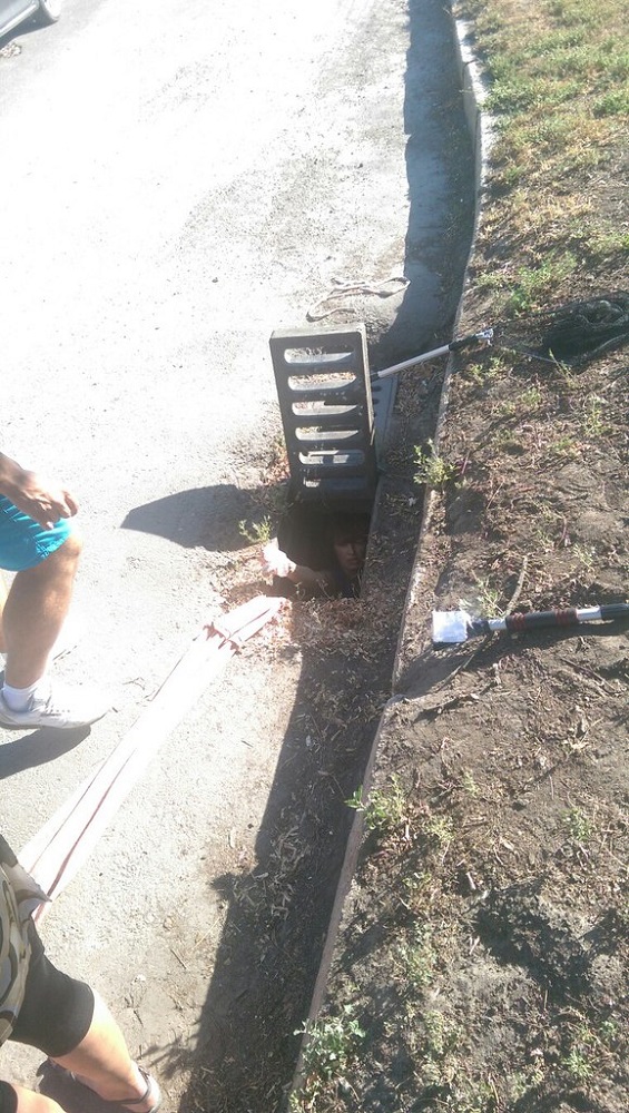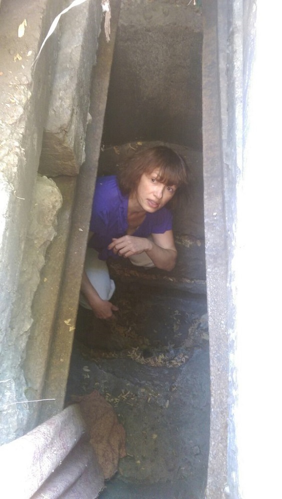 Мы там встретились с женщиной, которая обнаружила кошек, и к нам присоединилась молодая пара (Виктория и Евгений), которые откликнулись на этот пост, после чего мы все вместе пошли на тот берег, где находились кошки, чтобы найти способ вытянуть кошек... Там мы обнаружили сливное отверстие с решёткой. Открыли решётку и, увидев, что внизу сливные трубы ведут к реке - позвали кошку. Она откликалась, но не выходила. Отверстие в слив было узким, и в него могла пролезть только худенькая женщина. Таких было четверо. Но!... Рискнула только Зоя Савченко. Она смело спустилась в эту узкую и глубокую яму, чтобы спасти кошку!!! Кошку приманивали на корм в течении 10-15 минут.
