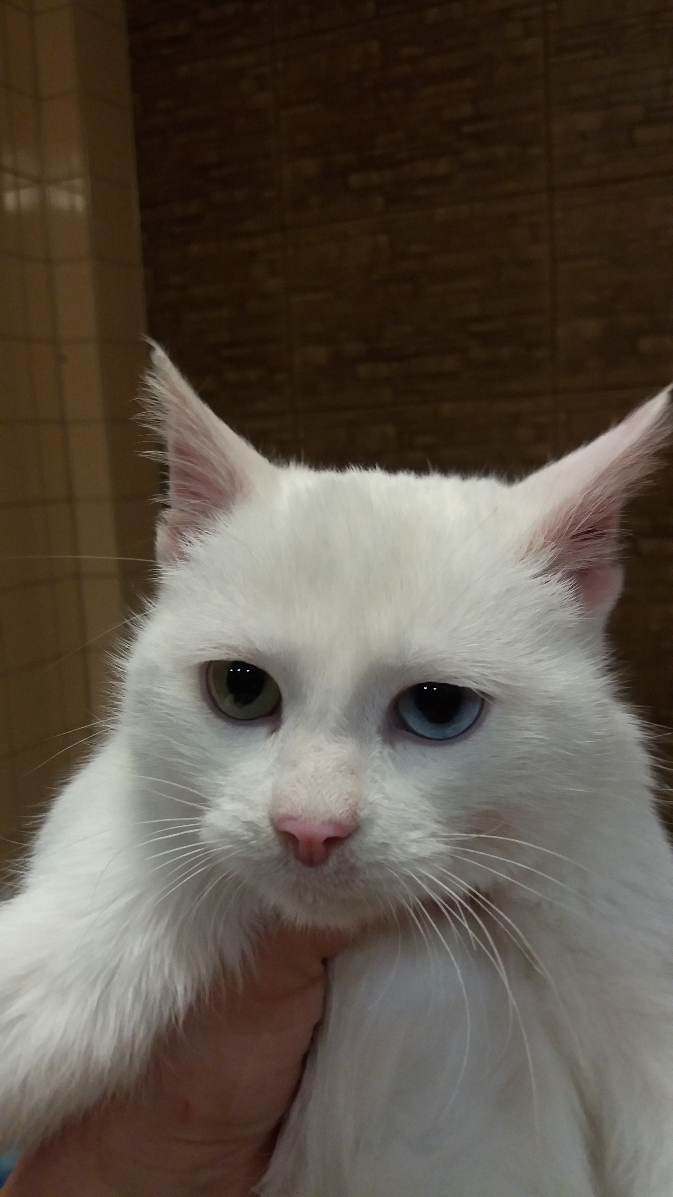 После отмытия нарисовался худой белоснежный мальчишка 6-7 месяцев с разными глазками: голубым и зеленоватым. НЕ ГЛУХОЙ!!!
