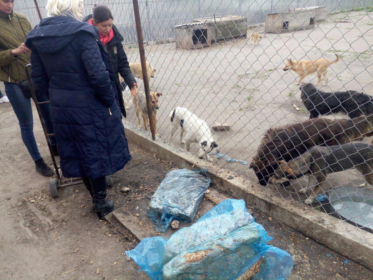 Одна из женщин-волонтёров сказала, что хочет пересчитать собак. В прошлый раз, когда они здесь были 24 апреля, в вольерах находилось больше 200 собак.