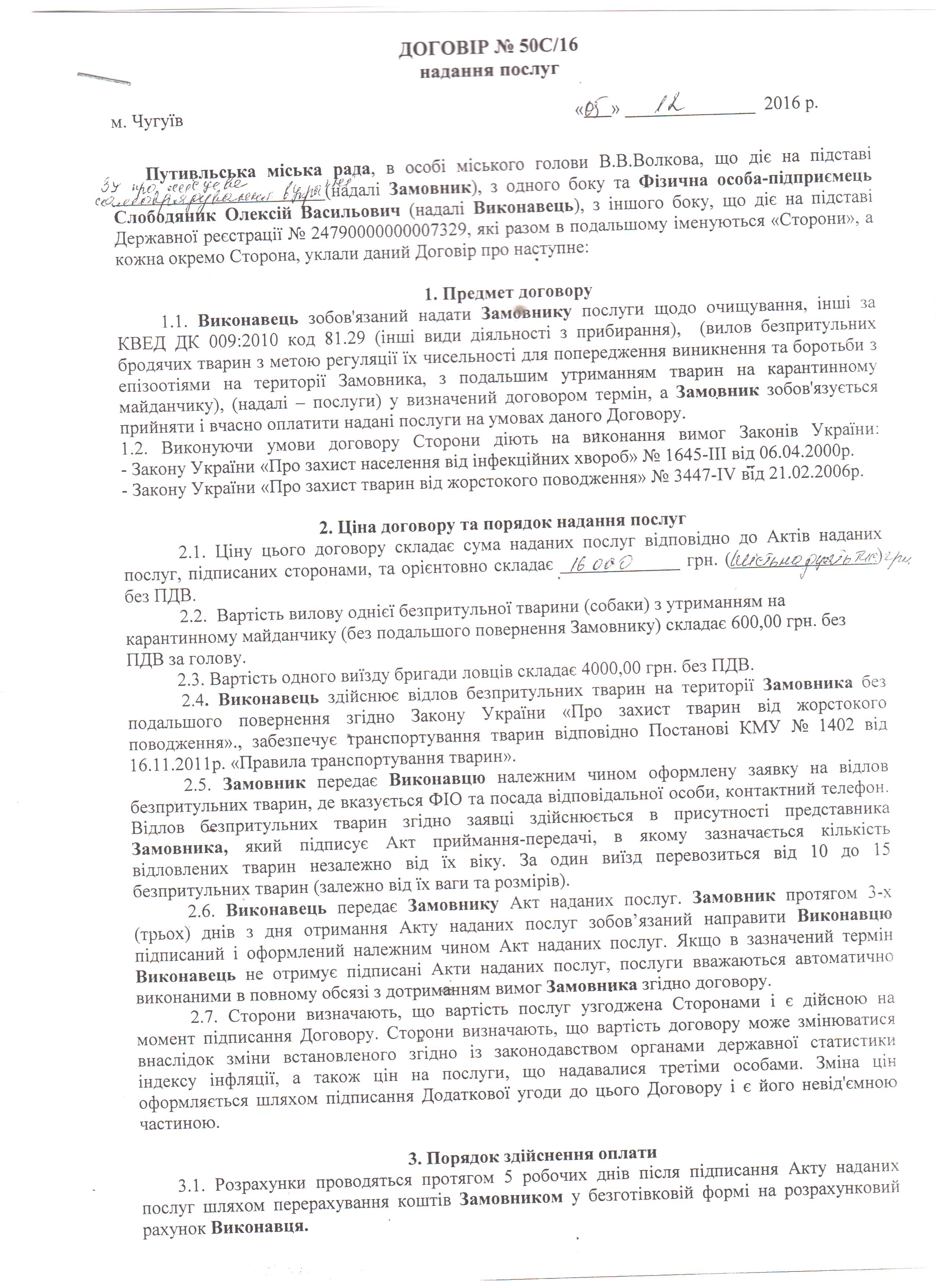 Мы составили и направили Информационный запрос в Путивльский горсовет с требованием прислать нам решение органа местного самоуправления на основании которого производился отлов и копию договора с ФО-П Слободяник А.В. (с Актами выполненных работ).