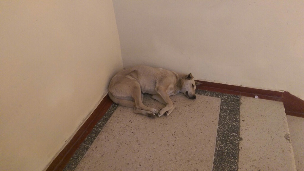 Такую собаку мы увидели на вокзале((( Там эпидемия чумки и многие болеют.