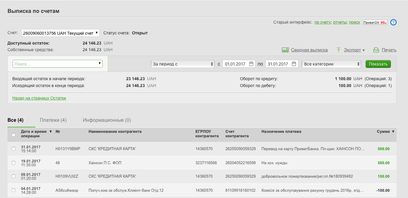 За 24-25.07.2017г. поступило на счёт 1500грн.
