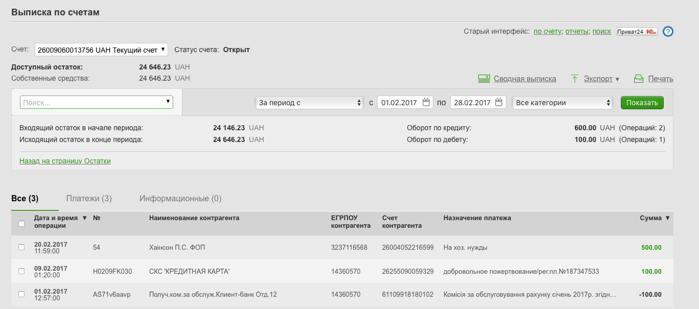 22.11.2017 переказ зі свого карткового рахунку на розраунковий рахунок