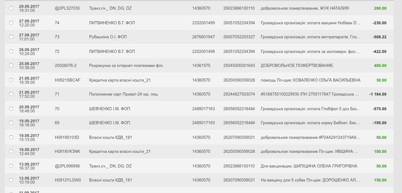 15.12.2017 від фракції "Об'єднання "Самопоміч" Харківської міськради (на стерилізацію тварин) + 3000грн.