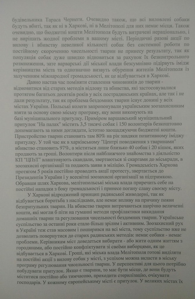 вот такое письмо пришло мне на почту от Мелитопольского городского общества защиты животных: