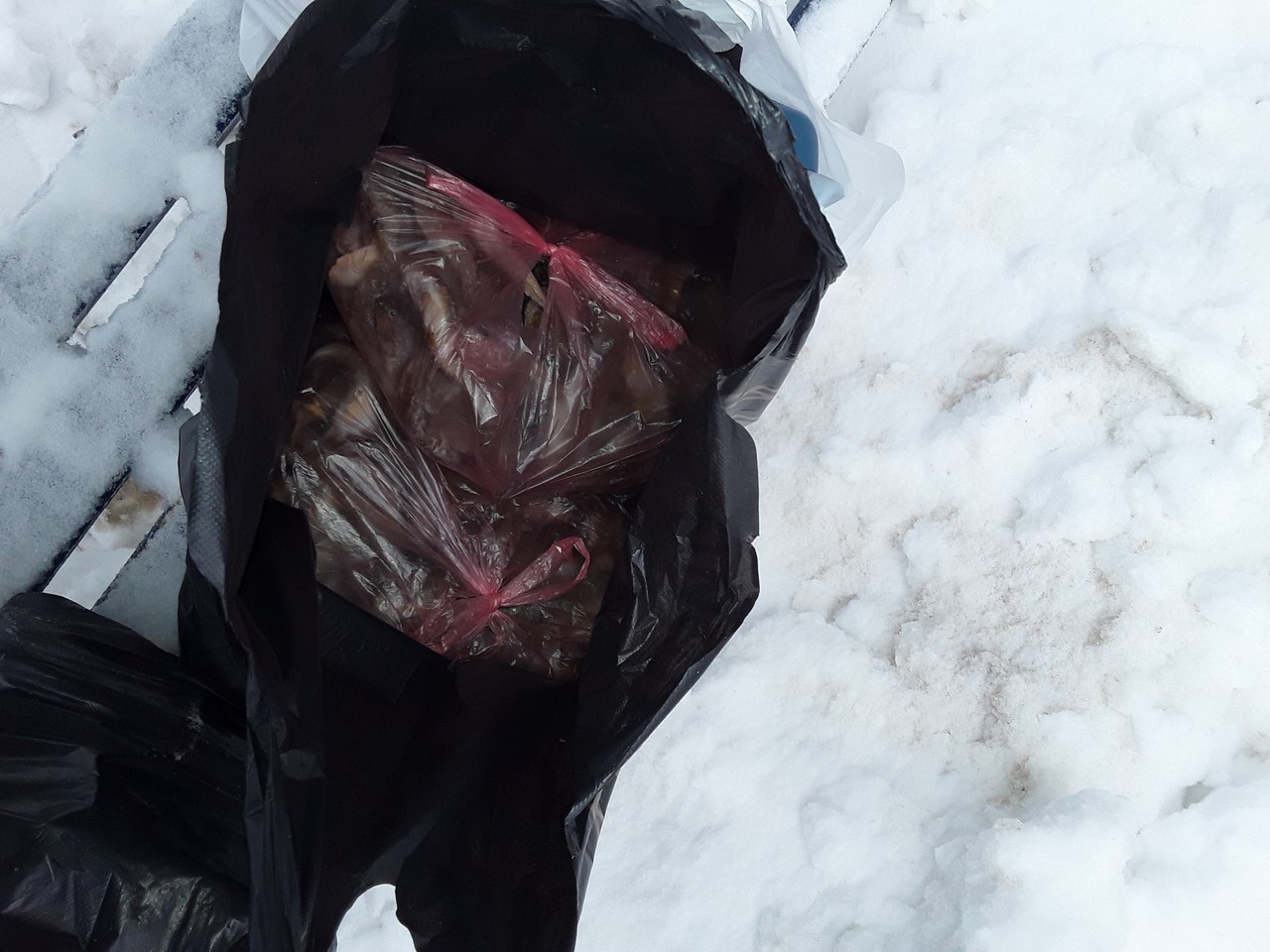 Вчера наша общественная организация "Лига помощи животным" ( за свои личные пожертвования, а не за пожертвования для животных) отвезла Таниным кошкам мешок овсянки ( 25 кг), 10 пачек рисовой сечки = 9,8 кг, обрезь говяжью - 4,5 кг, мороженой кильки - 20 кг.