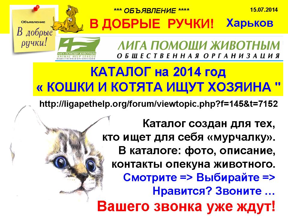 Re: КАТАЛОГ "КОШКИ И КОТЯТА ИЩУТ ХОЗЯИНА на 2014 - 15 гг!"
