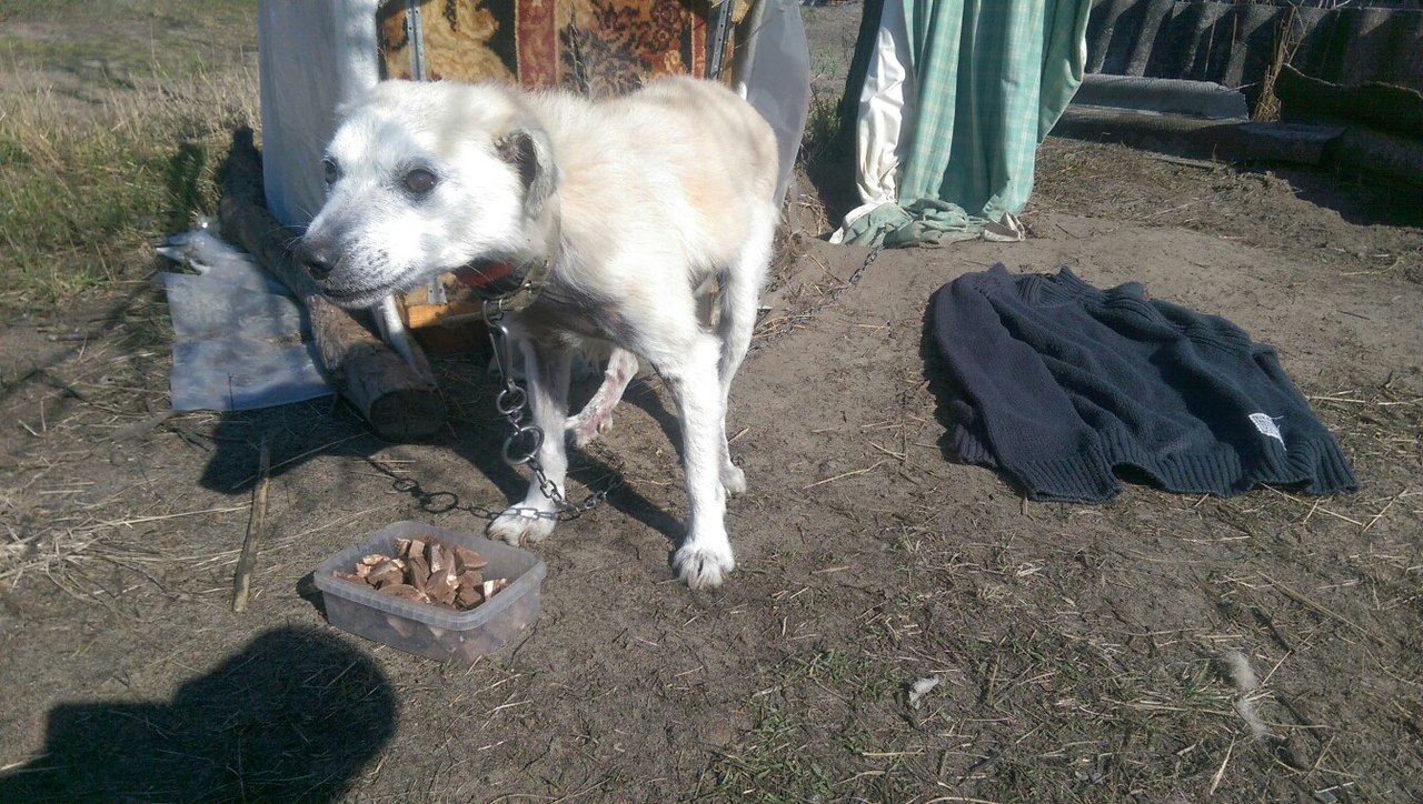 Позавчера ездила к Кнопе. Привезла ей вкусняшку - обезжиренный творог. А также одеяло (купила в Секонде), чтобы она могла возле будочки лежать. Так как с наступлением весны она стала любить лежать на свежем воздухе. (Эти затраты я взяла на себя, в отчёт не вписываю).