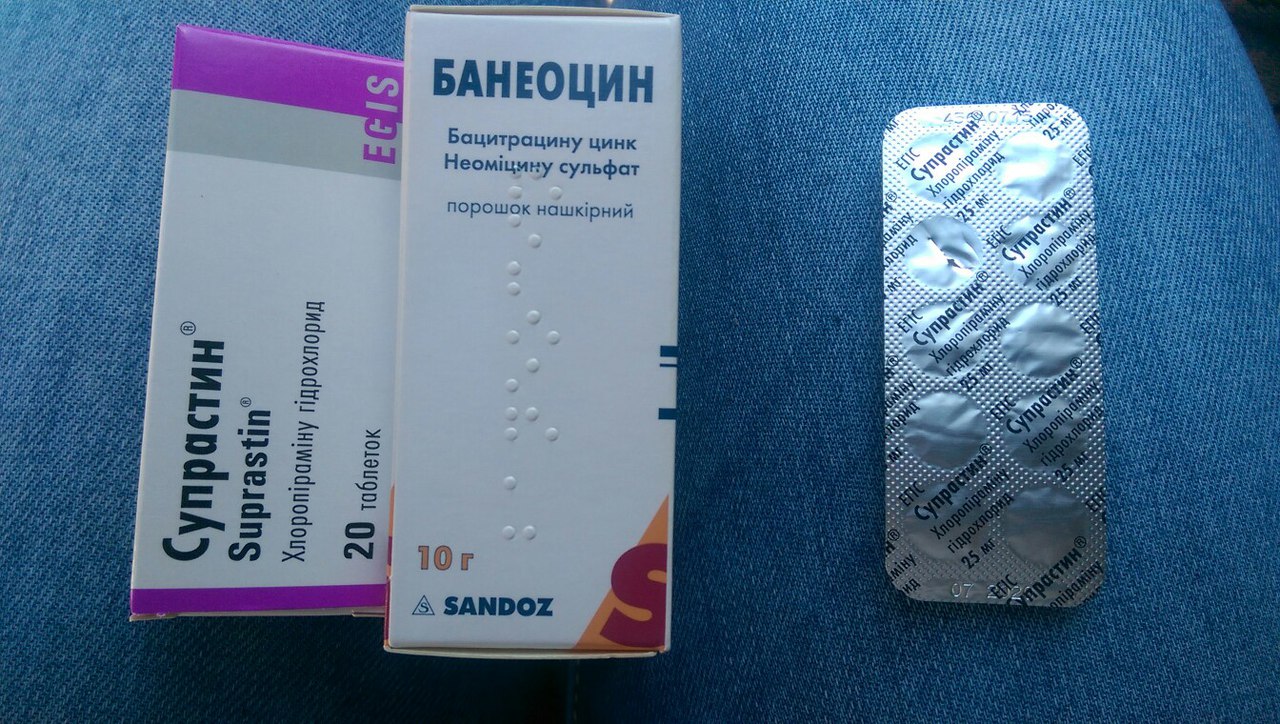 Так же купила лекарства: банеоцин (присыпка на ранки в ушах)=81,13грн. и таблетки супрастин - 3 пластины (упаковка+пластинка)=84,73грн., чтобы хватило на месяц.