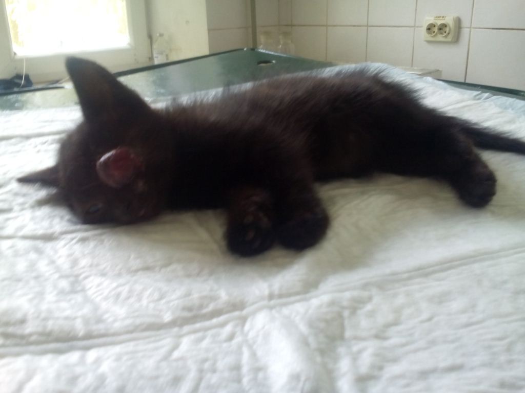 Черной маленькой кошечке был удален глаз. Операцию делал В.В. Соломоненко ( спасибо ему огромное за скидку и прекрасное отношение к животинке).