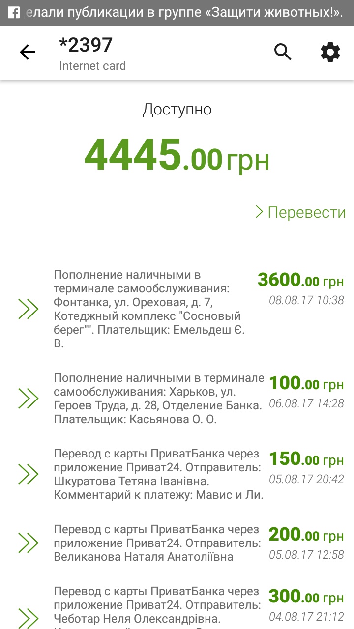 Один платёж 300грн от неизвестного добродетеля