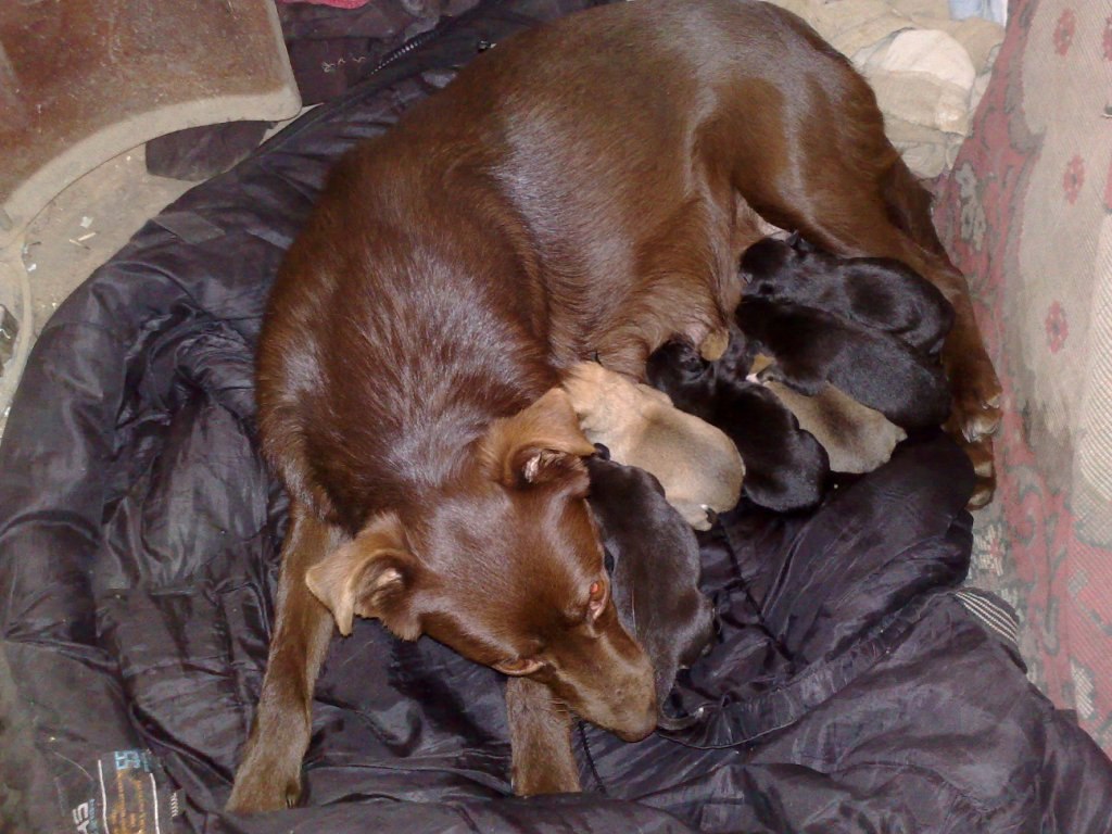 6 января она родила 8 щенков: 3 девочки и 5 мальчиков,