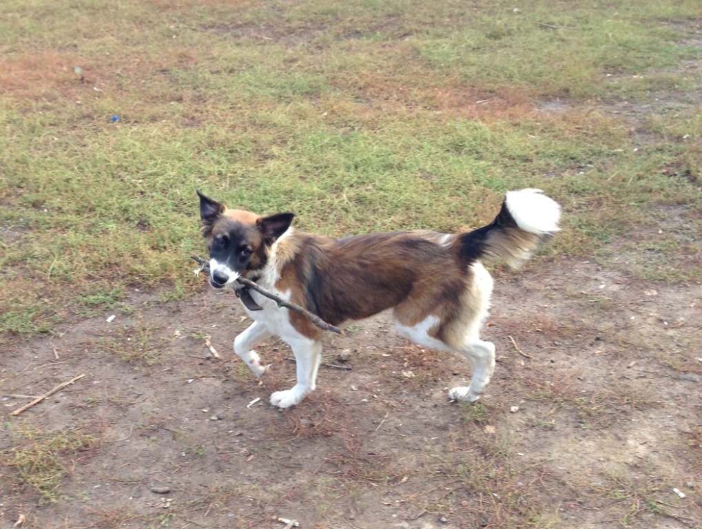 Живет с попавшими в трудную жизненную ситуацию людьми (бомжами) в подвале. Все бабушки двора ухаживают за ней (корм, купают ). Гуляет с собачниками носит палку, не хуже породистых щенков. Адекватная реакция на человека. Быстро учит команды, ходит на поводке (лично пробовала). Отзывается на имя: Дашка.