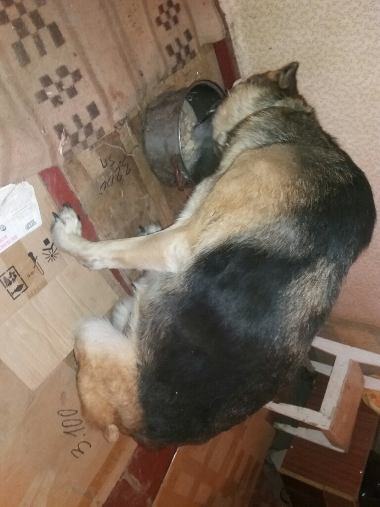 И хотела сказать, что Найда чувствует себя лучше. (Может потому что она под присмотром и находится в теплом месте). Она пытается встать, но у нее пока что не получается. Найда, как оказалось, понимает все команды: голос, молчать, дать переднюю лапу ( получается когда она лежит). Стала очень дружелюбной. С передержки женщина ее выводит на улицу, чтобы она сходила в туалет, при этом помогает ей, подвязав повязкой через живот. У Найды иногда получается потерпеть.