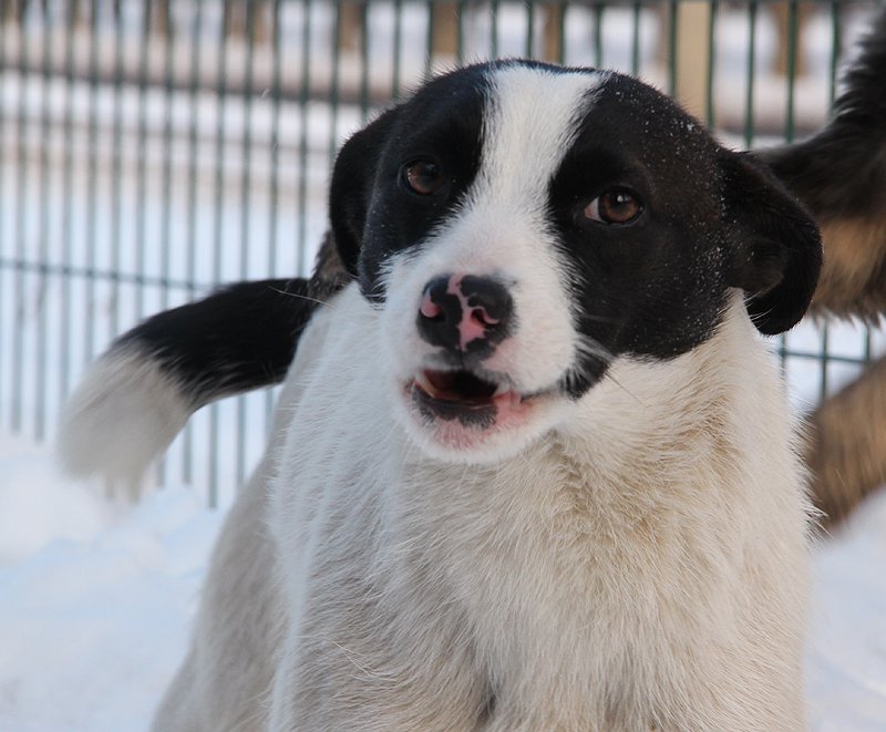 Умачка еще совсем молоденькая девочка!Она весит 10 кг., в холке 30-35 см.Она контактная, ласковая и великолепная охранница!Окрас белый с небольшими черными пятнами.Уже стерилизована.Ждет хозяина!сейчас на передержке, но она оплачена всего на 3 дня, поэтому очень нужна финансовая помощь на оплату ее содержания!