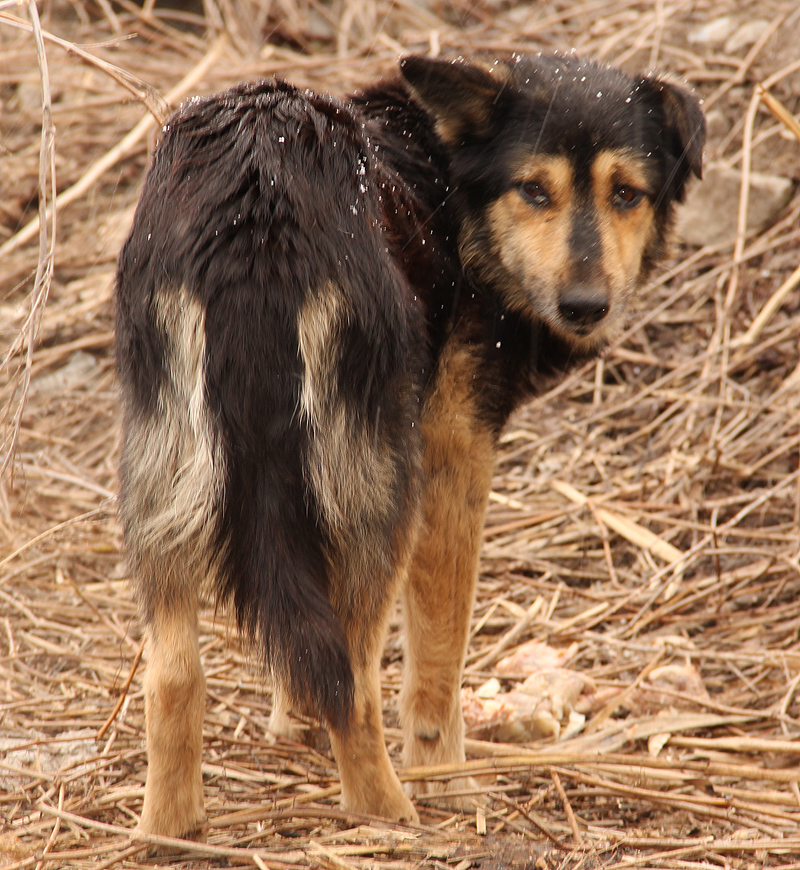 "Лежал он на пустыре,очень слабенький,когда мы подошли только вилял хвостиком.Все остальные собачки(в основном щеночки) мертвые,мы посмотрели,жалко очень."