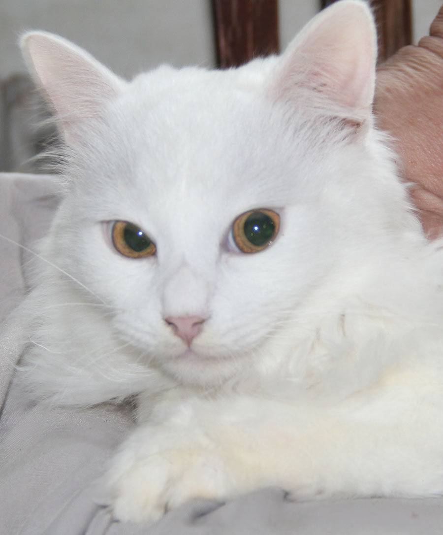 В еде не прихотлив.Ему уже 7 месяцев, готовится к кастрации.Очень красивый котик, белоснежного цвета!