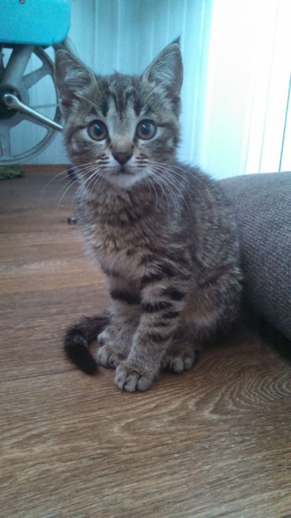 Отдам в хорошие руки котенка. Подобрала на улице. Мальчик, ориентировочно 2 месяца, к лотку приучен, по внешнему виду вполне здоров