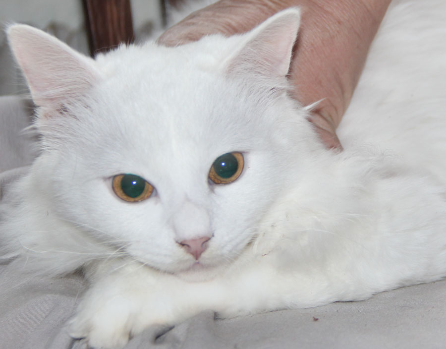 В еде не прихотлив.Ему уже 7 месяцев, готовится к кастрации.Очень красивый котик, белоснежного цвета!