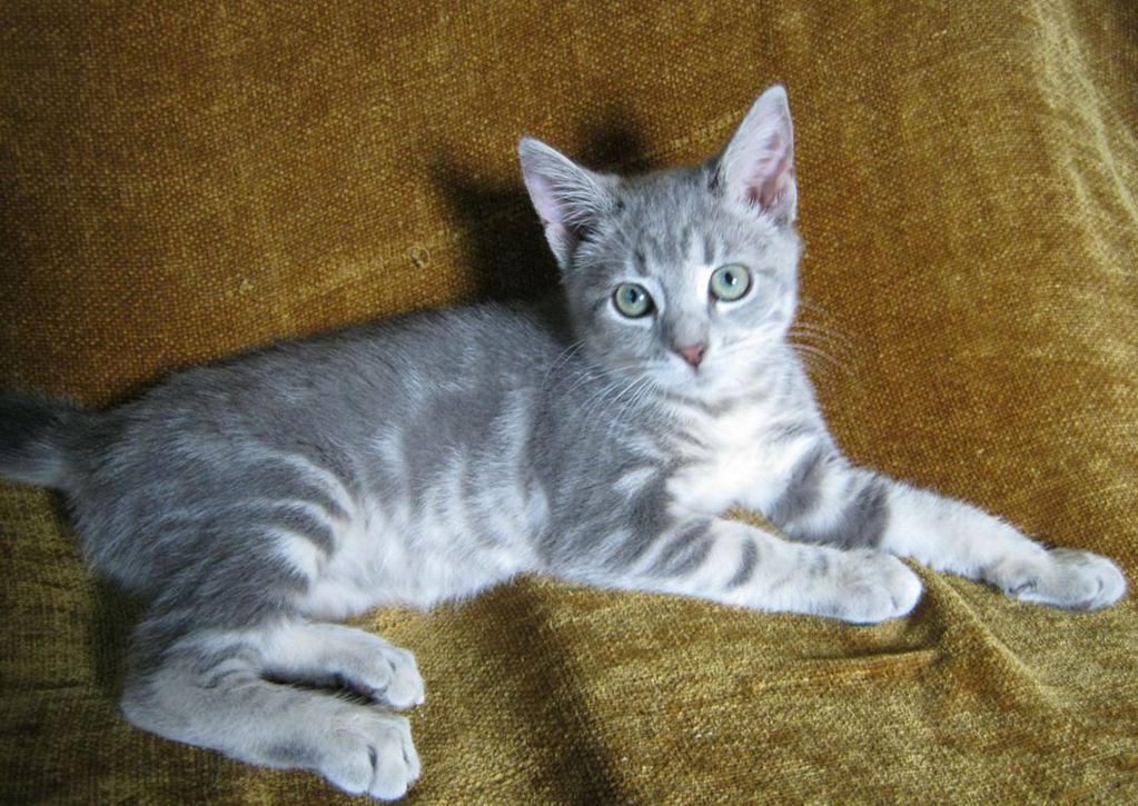 У Грейси очень красивый окрас - на пепельно-голубой шерстке белые мраморные разводы!