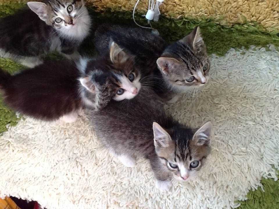 Кушают все и с большим аппетитом, всех паразитов прогнали, осваиваем горшок вполне успешно). Котятам где-то 1-1,5 мес, не больше, но ручные и мурчливые страшно)))!