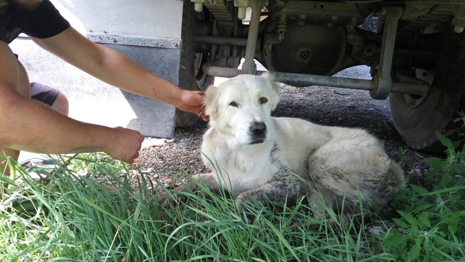 Уже три дні сидить на одному й тому ж місці. Можливо собаку висадили з машини, можливо загубилась.
